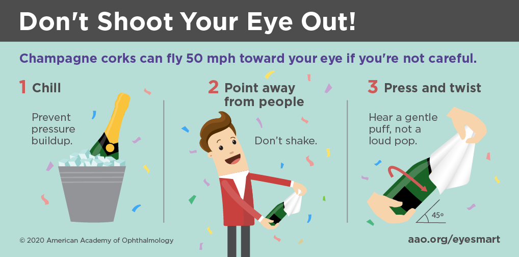 Toys aren’t the only hazard, and grownups can be at risk, far too. Uncorking a bottle of champagne also can pose a possibility to a vision-threatening injuries.